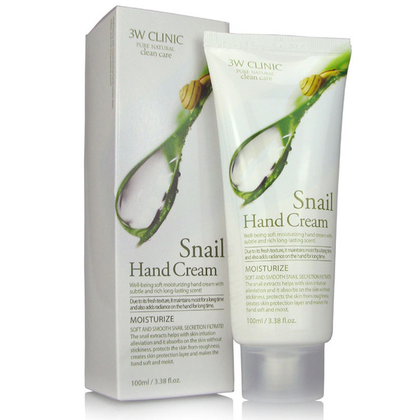 3W CLINIC Moisturizing Snail Hand Cream este o cremă de mâini hidratantă cu extract de mucină de melc. Înmoaie și hrănește intens pielea, o îmbogățește cu elemente benefice și prelungește aspectul tânăr al pielii.