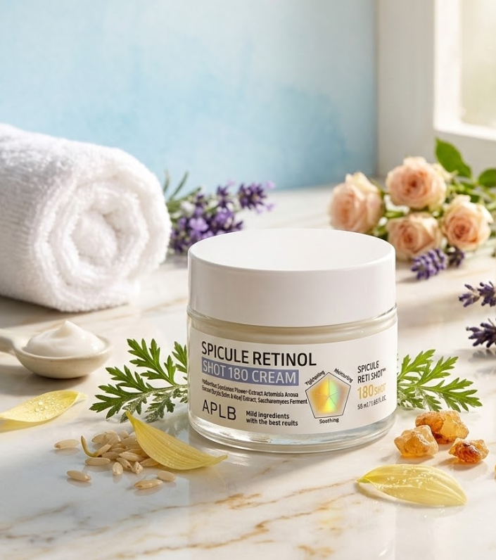 APLB SPICULE RETINOL SHOT 180 CREAM este un tratament de noapte intensiv, conceput pentru a accelera regenerarea celulară și a corecta semnele îmbătrânirii prin combinarea revoluționară a spiculelor cu retinolul.