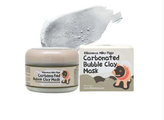 Elizavecca Milky Piggy Carbonated Bubble Clay Mask mască de curățare profundă pentru toate tipurile de piele, recomandată în special pentru tenul combinat, gras, cu pori dilatati. Textura cu argilă cu bule a măștii oferă nu numai curățare, ci și un efect ușor de masaj. Atunci când este aplicată pe piele, masca se transformă într-o spumă moale cu multe bule minuscule, care izbucnesc și masează ușor pielea, precum și curăță tot felul de impurități, excesul de sebum din pori și elimină urmele de produse cosmetice.
