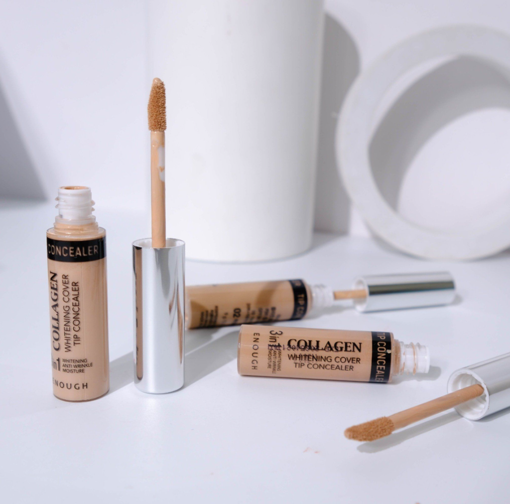 ENOUGH Collagen Whitening Cover Tip Concealer este un corector de machiaj cu o formulă multifuncțională, care nu doar maschează imperfecțiunile, ci oferă și beneficii de îngrijire a pielii. Este un produs popular în cosmetica coreeană, apreciat pentru acoperirea sa eficientă și proprietățile sale hidratante.