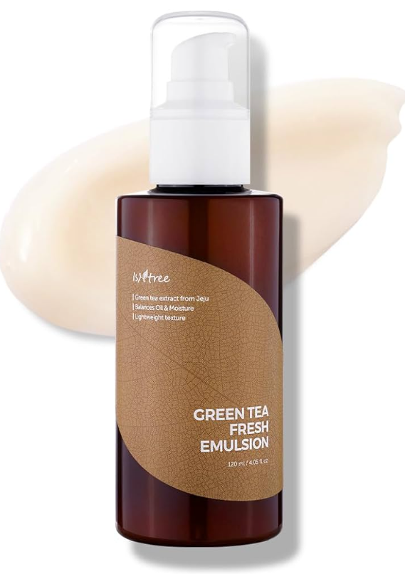 Ten mixt sau gras: IsNtree Green Tea Fresh Emulsion este ideal pentru aceste tipuri de piele datorită capacității sale de a regla sebumul și de a hidrata fără a îngrășa.