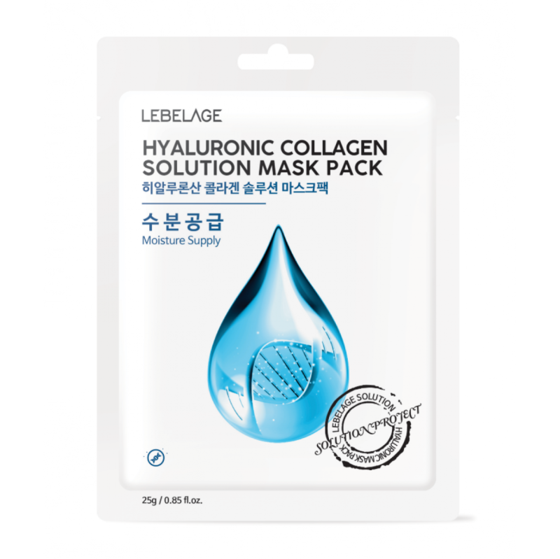 LEBELAGE HYALURONIC COLLAGEN SOLUTION MASK PACK este o mască pe țesătură, concepută pentru a oferi o hidratare intensă și pentru a îmbunătăți elasticitatea și fermitatea tenului. Această mască este special formulată pentru a combate semnele de îmbătrânire cauzate de deshidratare și pierderea de colagen.