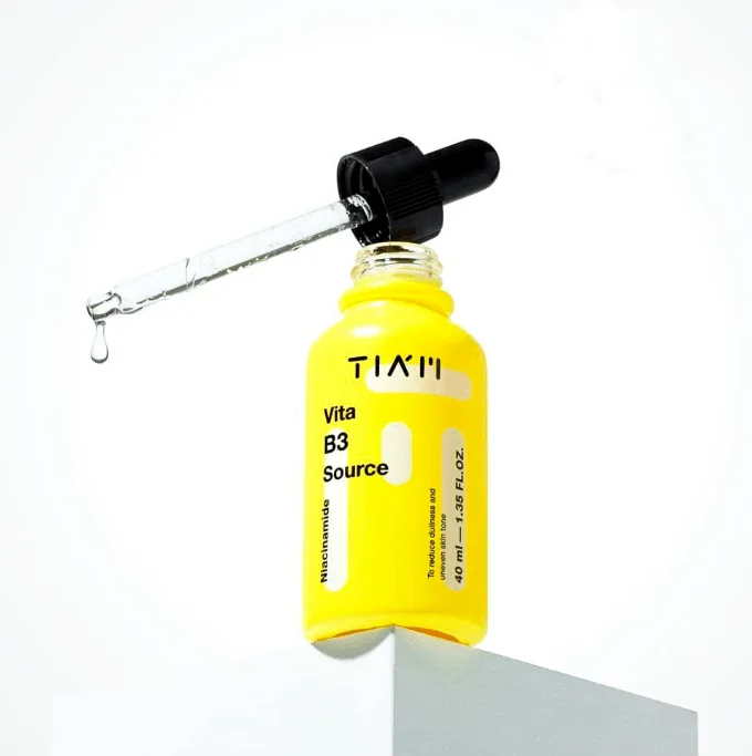 TIAM Vita B3 Source este un ser concentrat, îmbogățit cu ingrediente puternice de albire (niacinamidă și arbutină) care acționează asupra producerii de melanină. Serul luminează tenul, reduce roșeața și petele de vârstă, uniformizează tenul. Produsul îmbunătățește sinteza propriului colagen, crescând elasticitatea și fermitatea pielii, netezește și previne apariția ridurilor.